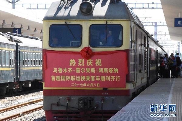 6月8日,旅客們開(kāi)始登上開(kāi)往哈薩克斯坦阿斯塔納的9001次國(guó)際旅客列車。當(dāng)日,隨著開(kāi)往哈薩克斯坦阿斯塔納的9001次國(guó)際旅客列車駛出站臺(tái),新疆霍爾果斯至阿斯塔納客運(yùn)鐵路正式投入運(yùn)行。這標(biāo)志著繼新疆阿拉山口鐵路口岸之后,中哈兩國(guó)開(kāi)行又一條新的鐵路客運(yùn)通道。新華社記者 張曉龍 攝