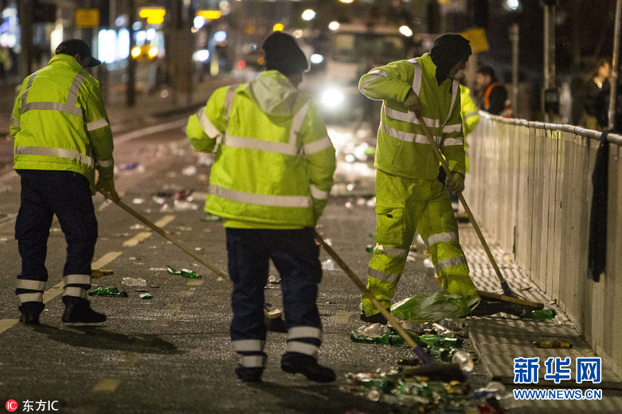 英國(guó):狂歡過(guò)后遍地垃圾 清潔工作者清理跨年夜殘局