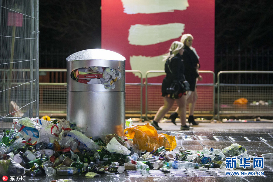 英國(guó):狂歡過后遍地垃圾 清潔工作者清理跨年夜殘局