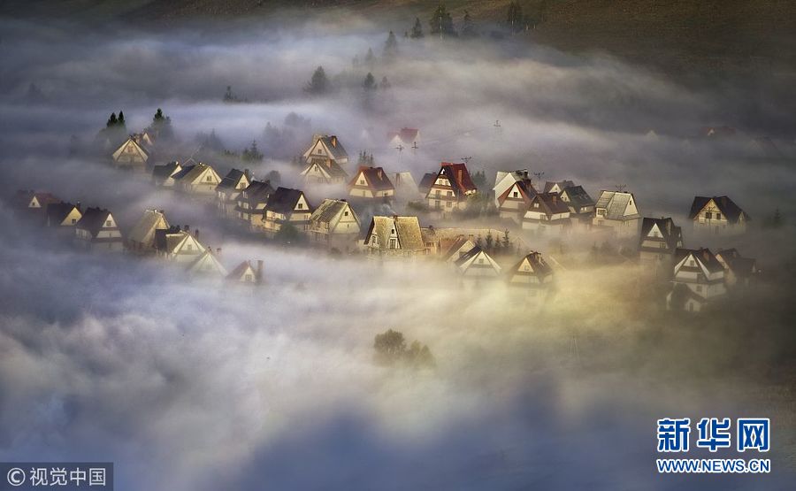 1月10日訊(具體拍攝時(shí)間不詳),波蘭皮耶尼內(nèi)山脈的一個(gè)村莊被濃霧籠罩,攝影師站在對(duì)面山上拍攝的景觀如童話世界一般,色彩繽紛的房子在濃霧中若隱若現(xiàn)仿若仙境。(圖片來(lái)源:視覺(jué)中國(guó))