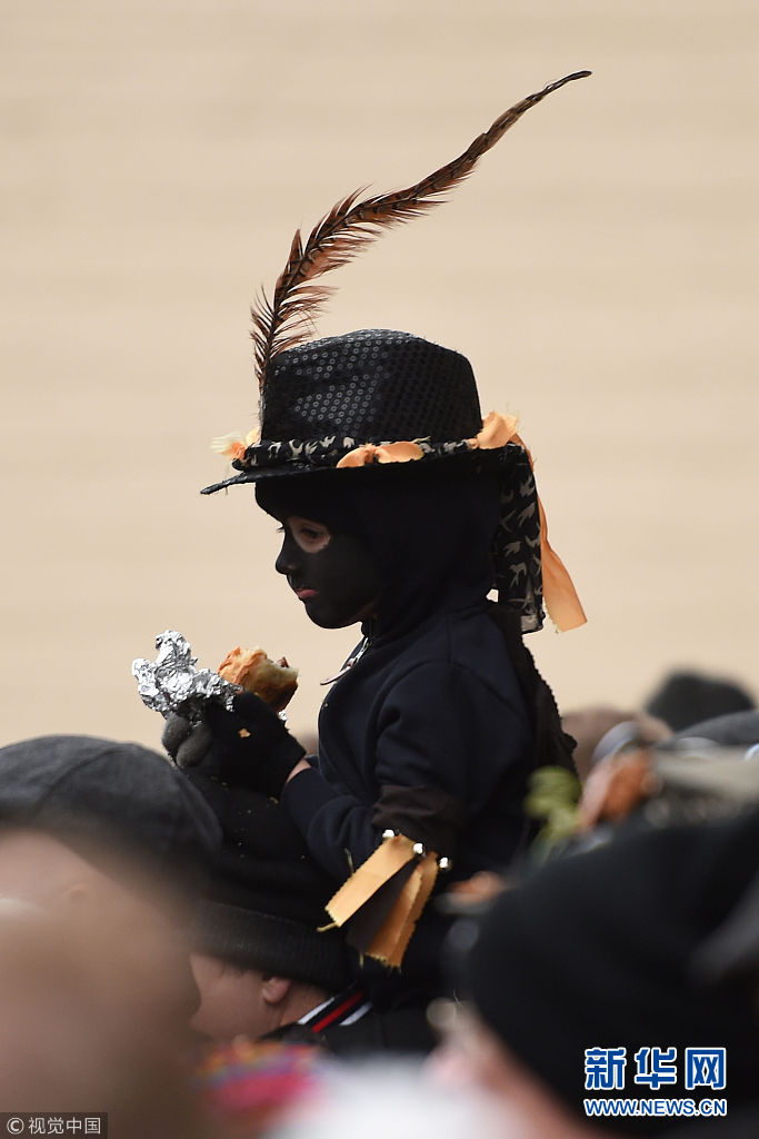 當(dāng)?shù)貢r(shí)間2018年1月13日,英國(guó)劍橋郡惠特爾西,民眾打扮成憨厚的“稻草熊”等各種形象,伴隨著樂(lè)隊(duì)的奏樂(lè)游行,慶祝第39屆惠特爾西“稻草熊”節(jié)。(圖片來(lái)源:視覺(jué)中國(guó))