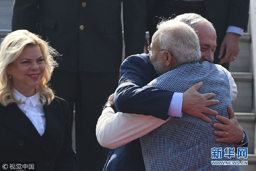 當(dāng)?shù)貢r(shí)間1月14日,印度新德里,以色列總理內(nèi)塔尼亞胡抵達(dá)印度展開訪問。(圖片來源:視覺中國(guó))