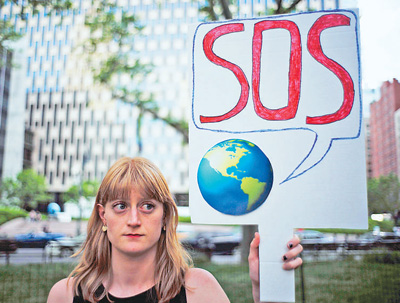 美國(guó)總統(tǒng)特朗普去年宣布美國(guó)退出應(yīng)對(duì)全球氣候變化的《巴黎協(xié)定》。圖為在美國(guó)紐約,一名女子手持標(biāo)語(yǔ)參加活動(dòng),抗議特朗普的決定。 新華社發(fā)
