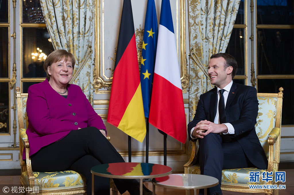 當地時間2018年1月19日,法國巴黎,法國總統(tǒng)馬克龍在愛麗舍宮會晤到訪的德國總理默克爾,表示在推動歐洲改革的進程中,法國需要德國。馬克龍以此對面臨大選后組閣危機的默克爾表達支持。馬克龍在會后強調了法德合作的重要性。他表示,法國無法單獨實現自身的抱負,需要與德國的抱負結合起來。