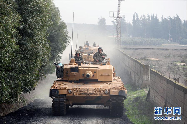 1月21日,在土耳其哈塔伊省與敘利亞邊境地區(qū),土軍地面部隊(duì)開往敘利亞北部阿夫林。土耳其總理耶爾德勒姆21日宣布,土耳其軍隊(duì)當(dāng)天上午已進(jìn)入敘利亞邊境,展開對敘北部阿夫林的地面軍事行動(dòng)。 新華社發(fā)