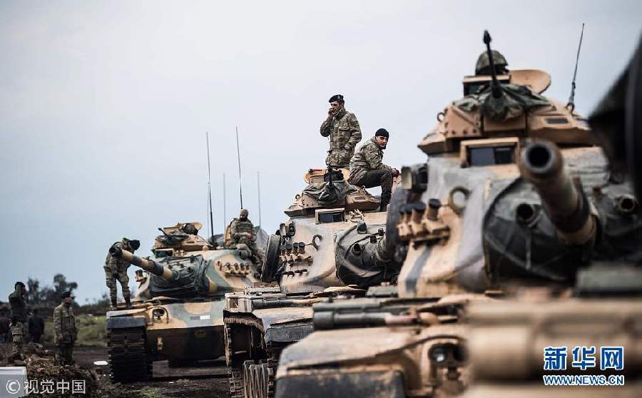 當(dāng)?shù)貢r(shí)間1月21日,土耳其哈塔伊省,土耳其部隊(duì)在土敘邊境哈薩鎮(zhèn)附近。(圖片來源:視覺中國)