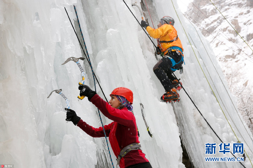 當(dāng)?shù)貢r間1月26日,伊朗Meygun,攀巖愛好者在Meygun冰上攀巖俱樂部挑戰(zhàn)冰瀑攀巖。據(jù)悉,Meygun冰上攀巖俱樂部每年都會迎來數(shù)千專業(yè)攀巖人士以及學(xué)生。(圖片來源:東方IC)