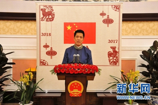 1月28日,在波蘭首都華沙,中國駐波蘭大使徐堅在新春招待會上致辭。當日,中國駐波蘭大使館舉行新春招待會,在波華僑華人、中資機構員工、漢語教師及留學生等數(shù)百人齊聚一堂,共迎新春。新華網(wǎng)發(fā) 石中玉攝