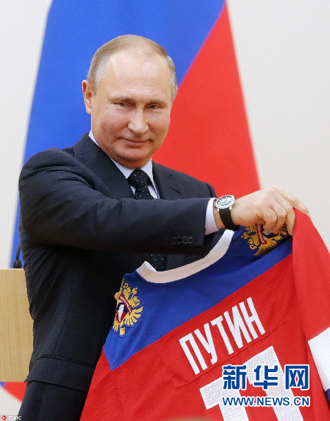 當(dāng)?shù)貢r(shí)間1月31日,俄羅斯莫斯科,普京會(huì)見征戰(zhàn)平昌冬奧會(huì)的俄羅斯運(yùn)動(dòng)員,獲俄冰球隊(duì)贈(zèng)送簽名球衣。(圖片來(lái)源:東方IC)