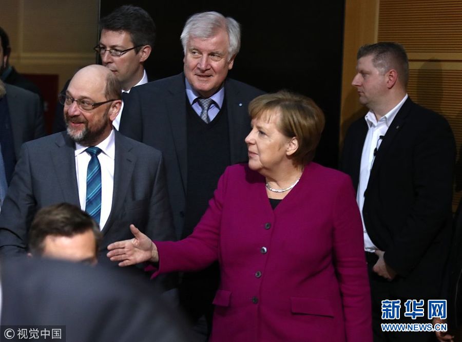 2月2日,德國柏林,德國聯(lián)盟黨(由基民盟和基社盟組成)和社民黨在社民黨總部舉行會談。(圖片來源:視覺中國)