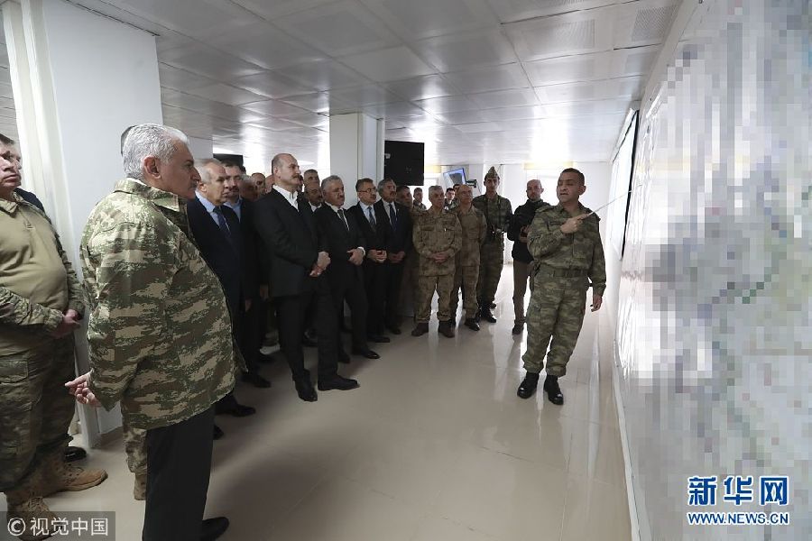 當(dāng)?shù)貢r(shí)間2月4日,土耳其哈塔伊,土耳其總理耶爾德勒姆趕往前線指揮所視察“橄欖枝”軍事行動(dòng)進(jìn)程。(圖片來(lái)源:視覺(jué)中國(guó))
