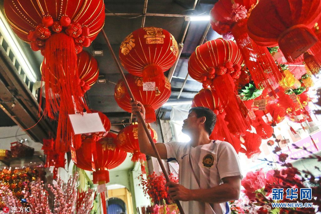 當?shù)貢r間2018年2月11日,馬來西亞吉隆坡,中國農(nóng)歷新年將至,當?shù)啬曦浭袌黾t火。(圖片來源:東方IC)