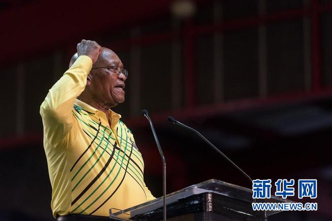 2月14日,南非總統(tǒng)雅各布·祖馬發(fā)表全國(guó)講話時(shí)宣布辭職。這是祖馬在南非約翰內(nèi)斯堡舉行的非洲人國(guó)民大會(huì)(非國(guó)大)第54屆全國(guó)代表大會(huì)上發(fā)言的資料照片(2017年12月16日攝)。新華社發(fā)(戴維·奈克爾攝)