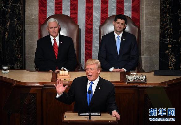 1月30日,美國(guó)總統(tǒng)特朗普(前)在華盛頓國(guó)會(huì)山發(fā)表其執(zhí)政以來(lái)的首次國(guó)情咨文演講。新華社記者 殷博古 攝