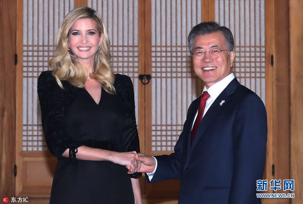 當?shù)貢r間2018年2月23日,韓國首爾,韓國總統(tǒng)文在寅夫婦在青瓦臺設晚宴,歡迎伊萬卡來訪。美國總統(tǒng)特朗普之女、總統(tǒng)助理伊萬卡率領的美國代表團23日抵韓進行訪問,并將出席平昌冬奧會閉幕式。(圖片來源:東方IC)