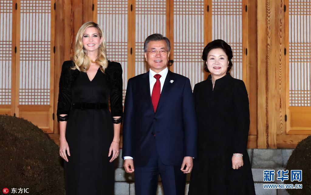 當(dāng)?shù)貢r(shí)間2018年2月23日,韓國(guó)首爾,韓國(guó)總統(tǒng)文在寅夫婦在青瓦臺(tái)設(shè)晚宴,歡迎伊萬(wàn)卡來訪。美國(guó)總統(tǒng)特朗普之女、總統(tǒng)助理伊萬(wàn)卡率領(lǐng)的美國(guó)代表團(tuán)23日抵韓進(jìn)行訪問,并將出席平昌冬奧會(huì)閉幕式。(圖片來源:東方IC)