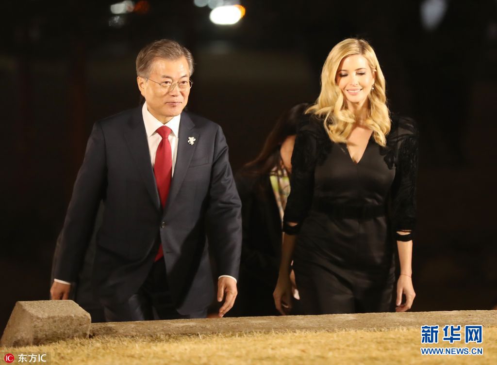 當(dāng)?shù)貢r(shí)間2018年2月23日,韓國首爾,韓國總統(tǒng)文在寅夫婦在青瓦臺設(shè)晚宴,歡迎伊萬卡來訪。美國總統(tǒng)特朗普之女、總統(tǒng)助理伊萬卡率領(lǐng)的美國代表團(tuán)23日抵韓進(jìn)行訪問,并將出席平昌冬奧會閉幕式。(圖片來源:東方IC)
