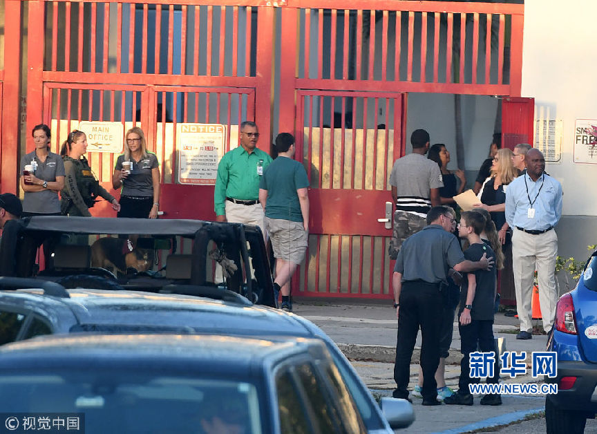 當(dāng)?shù)貢r間2月28日,美國佛羅里達(dá)州帕克蘭,發(fā)生槍擊案的道格拉斯中學(xué)復(fù)課,學(xué)生和教職工重返校園,大批警察出動維護(hù)治安。2月14日,一名19歲的槍手在學(xué)校里開槍,造成17人死亡。(圖片來源:視覺中國)