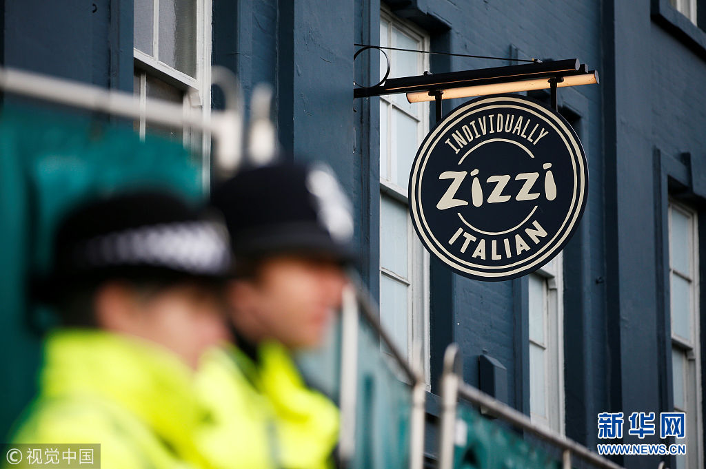 當(dāng)?shù)貢r間2018年3月11日,英國索爾茲伯里市,Zizzi餐廳關(guān)閉進(jìn)行調(diào)查工作。警方在威爾特郡索爾茲伯里市一家意大利餐廳發(fā)現(xiàn)神經(jīng)毒劑的痕跡,斯克里帕爾父女中毒前在那里用餐。(圖片來源:視覺中國)