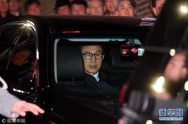 資料圖:韓國首爾中央地方法院22日晚對(duì)前總統(tǒng)李明博簽發(fā)逮捕令。新華網(wǎng)發(fā)