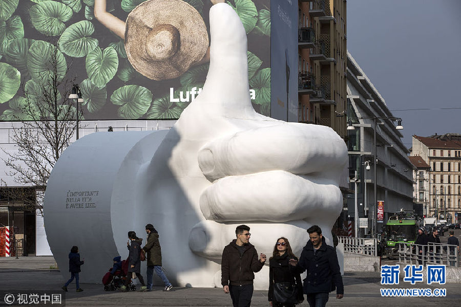 當(dāng)?shù)貢r(shí)間2018年3月25日,意大利米蘭,一座在社交媒體上代表“點(diǎn)贊”的雕塑出現(xiàn)在加里波第門旁。 (圖片來(lái)源:視覺(jué)中國(guó))