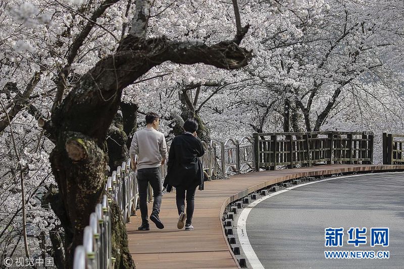 韓國(guó)櫻花盛放 吸引游客觀賞