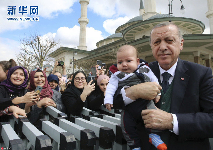 土總統(tǒng)埃爾多安會見支持者 抱小萌娃與民眾打招呼