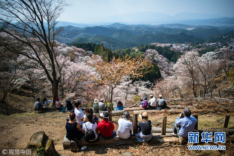 4月3日,日本奈良吉野,當(dāng)?shù)貦鸦ㄊ⒎?,吸引眾多游客前來觀賞。(圖片來源:視覺中國)