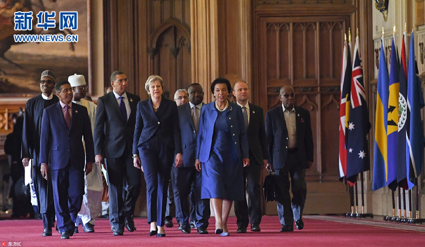 當(dāng)?shù)貢r間2018年4月20日,英國伯克郡,英聯(lián)邦政府首腦會議在溫莎城堡舉行。據(jù)外媒報道,查爾斯王子已經(jīng)被批準(zhǔn)接任下一任英聯(lián)邦元首。英聯(lián)邦各國領(lǐng)導(dǎo)人在溫莎城堡集體作出了這一決定。(圖片來源:東方IC