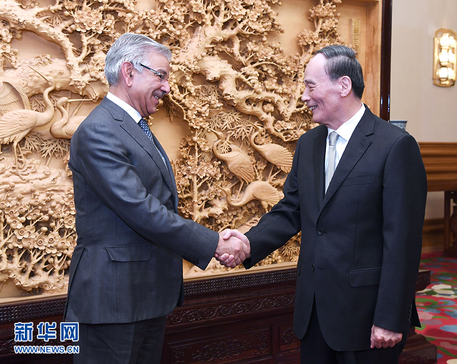 王岐山表示,習(xí)近平新時代中國特色社會主義思想是中國黨和國家發(fā)展的指導(dǎo)思想,我們將統(tǒng)籌推進“五位一體”總體布局,堅定“四個自信”,保持冷靜清醒,實現(xiàn)建設(shè)社會主義現(xiàn)代化國家的宏偉藍圖。構(gòu)建人類命運共同體符合時代潮流,巴基斯坦是中國全天候戰(zhàn)略合作伙伴,中巴關(guān)系應(yīng)走在建設(shè)人類命運共同體前列。中方將繼續(xù)將巴基斯坦作為周邊外交的優(yōu)先方向,推動兩國關(guān)系發(fā)展到新高度。