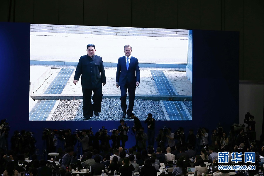 新華社快訊:朝鮮最高領(lǐng)導人金正恩27日上午在板門店跨過軍事分界線,與韓國總統(tǒng)文在寅會晤。