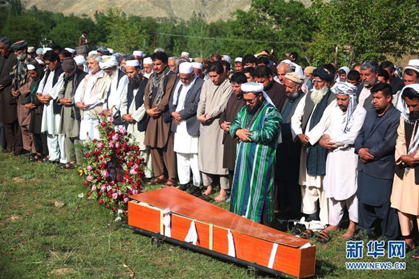 4月30日,在阿富汗喀布爾省古勒達拉行政區(qū),親友為在襲擊中遇難的法新社喀布爾記者站首席攝影記者沙阿·馬雷舉行葬禮。新華社發(fā)(拉赫馬特·阿里扎達 攝)