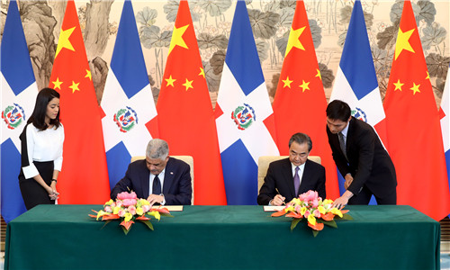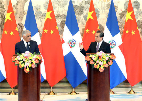 王毅表示,中國和多米尼加正式建交,標志著兩國關系翻開了新的歷史篇章。從此,中國在拉美多了一位守望相助的好朋友,多米尼加在發(fā)展振興道路上有了一位互利合作的好伙伴,中多雙方將成為促進南南合作、維護發(fā)展中國家共同利益的好兄弟。中國特色社會主義進入了新時代,正在加快實現(xiàn)現(xiàn)代化進程。同中國建交,意味著為多米尼加自身發(fā)展帶來前所未有的巨大機遇。隨著雙方合作潛力的不斷釋放,這一機遇將迅速轉(zhuǎn)化成現(xiàn)實,為1000多萬多米尼加人民持續(xù)帶來實實在在的利益和福祉。多米尼加是中美洲和加勒比地區(qū)最大經(jīng)濟體,在地區(qū)事務中有著重要影響,中多建交也將為中國和拉美的整體合作注入新的動力,開辟新的空間。