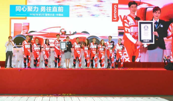 據(jù)吉尼斯世界紀(jì)錄官網(wǎng)報(bào)道,近日,聯(lián)想集團(tuán)在北京航空航天大學(xué)體育館舉辦了以“同心聚力,勇往直前”為主題的誓師大會(huì),1300名聯(lián)想員工參加了此次大會(huì),并創(chuàng)造了一項(xiàng)新的吉尼斯世界紀(jì)錄稱(chēng)號(hào)。在吉尼斯世界紀(jì)錄認(rèn)證官的見(jiàn)證下,所有員工歷時(shí)兩小時(shí),用520臺(tái)筆記本電腦成功創(chuàng)造“以多米諾骨牌形式擺放并推倒最多筆記本電腦”的新紀(jì)錄。