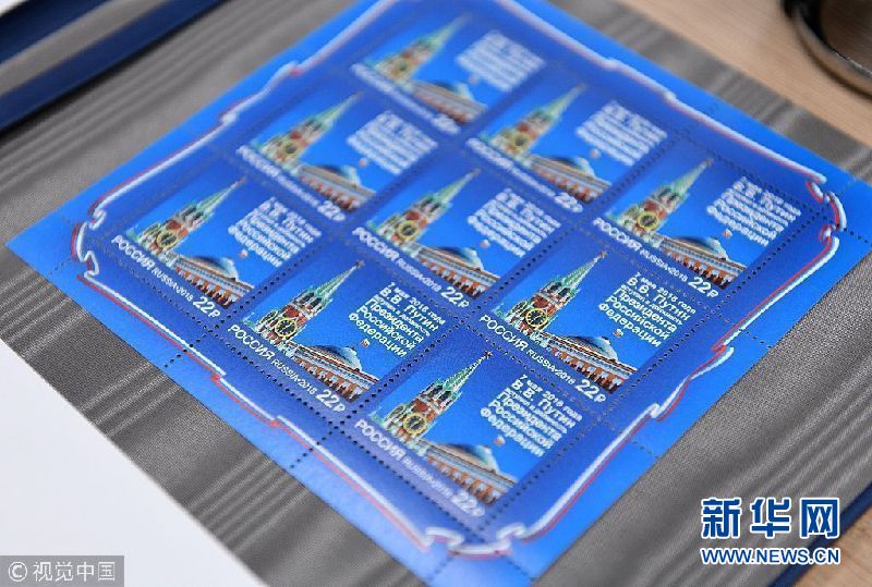 當(dāng)?shù)貢r(shí)間2018年5月7日,俄羅斯莫斯科,俄羅斯發(fā)行普京就職紀(jì)念郵票。(圖片來源:視覺中國)