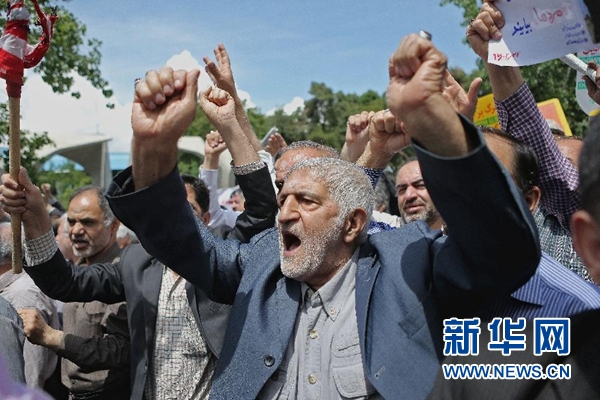 在當(dāng)天的示威活動中,伊朗民眾手持“維護伊核協(xié)議、維護地區(qū)和平”和“伊朗不懼外來威脅”等標(biāo)語并高呼口號。