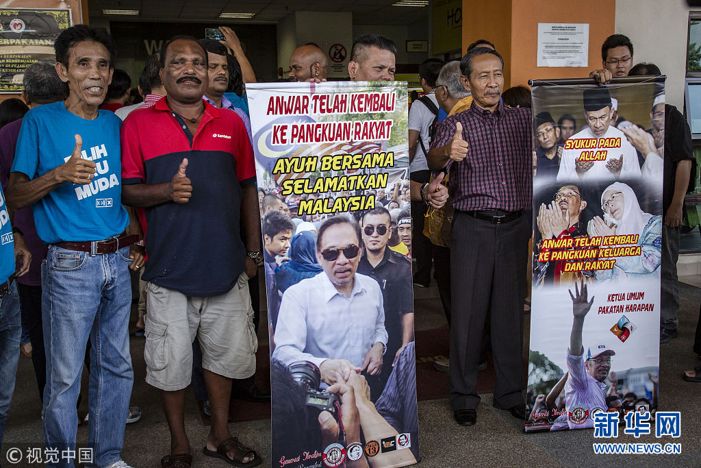 2018年5月11日訊,馬來西亞新當(dāng)選總理馬哈蒂爾表示,最高元首已經(jīng)同意特赦前副總理安瓦爾,希盟方面將盡快推動(dòng)有關(guān)程序。安瓦爾以前頗受馬哈蒂爾賞識(shí)和提攜,被外界視為馬哈蒂爾的接班人。然而,兩人后來鬧僵,馬哈蒂爾1998年革除安瓦爾的副總理之職。隨后幾年間,安瓦爾因貪腐和雞奸罪名入獄。路透社報(bào)道,根據(jù)馬哈蒂爾與安瓦爾“談妥”的條件,馬哈蒂爾贏得選舉后將向最高元首尋求特赦安瓦爾,待安瓦爾出獄后,便退位讓賢,改由安瓦爾出任總理。不過,馬來西亞法律規(guī)定出獄者5年內(nèi)不得參政,即便獲特赦也要參加國(guó)會(huì)議席補(bǔ)選才有望重返政壇。(圖片來源:視覺中國(guó))