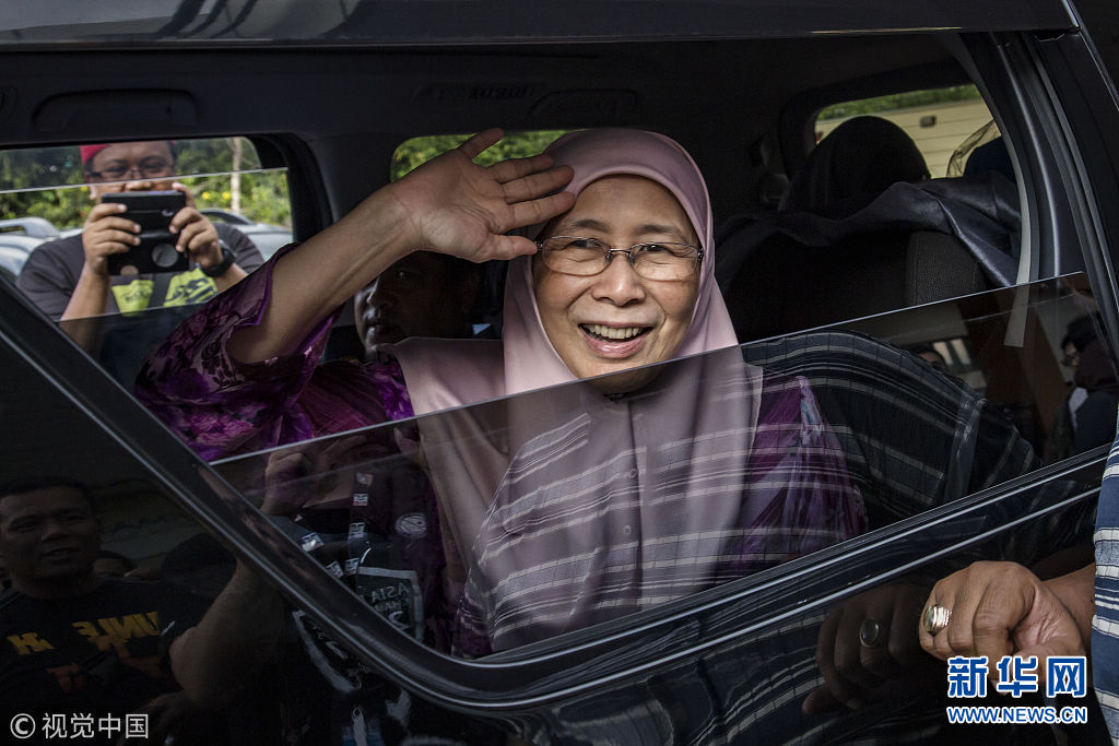 當(dāng)?shù)貢r(shí)間2018年5月11日,馬來(lái)西亞吉隆坡,馬來(lái)西亞前副總理安瓦爾的夫人Wan Azizah探視獄中的丈夫。馬來(lái)西亞新當(dāng)選總理馬哈蒂爾表示,最高元首已經(jīng)同意特赦前副總理安瓦爾。
