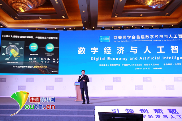 5月12日,歐美同學(xué)會首屆數(shù)字經(jīng)濟(jì)與人工智能大會“數(shù)字經(jīng)濟(jì)與人工智能現(xiàn)狀與趨勢”論壇上,華為5G產(chǎn)品線副總裁杜葉青發(fā)表演講。中國青年網(wǎng)記者 馬珊 攝
