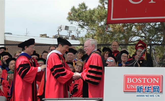 新華社美國波士頓5月20日電(記者徐劍梅)在美國波士頓大學(xué)20日舉行的2018屆畢業(yè)典禮上,中國導(dǎo)演張藝謀被授予波士頓大學(xué)人文藝術(shù)榮譽博士學(xué)位。