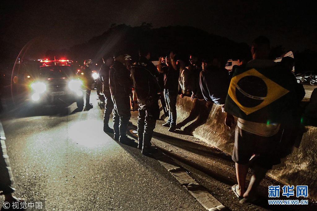 當(dāng)?shù)貢r間2018年5月26日,巴西圣貝爾納多杜坎普,卡車司機駕車封堵高速公路,抗議油價上漲。(圖片來源:視覺中國)