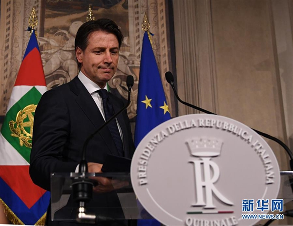 5月27日,在意大利首都羅馬,意新任總理孔特發(fā)表講話。據(jù)當(dāng)?shù)孛襟w報(bào)道,孔特27日晚間與總統(tǒng)馬塔雷拉會(huì)面并提交擬定的內(nèi)閣成員名單時(shí),馬塔雷拉否決了由意大利聯(lián)盟黨和五星運(yùn)動(dòng)力推的持疑歐立場的經(jīng)濟(jì)學(xué)家保羅·薩沃納出任財(cái)政部長??滋叵蚩偨y(tǒng)提出放棄組閣任務(wù)請求,請求得到總統(tǒng)確認(rèn)。新華社發(fā)(阿爾貝托·林格里亞攝)