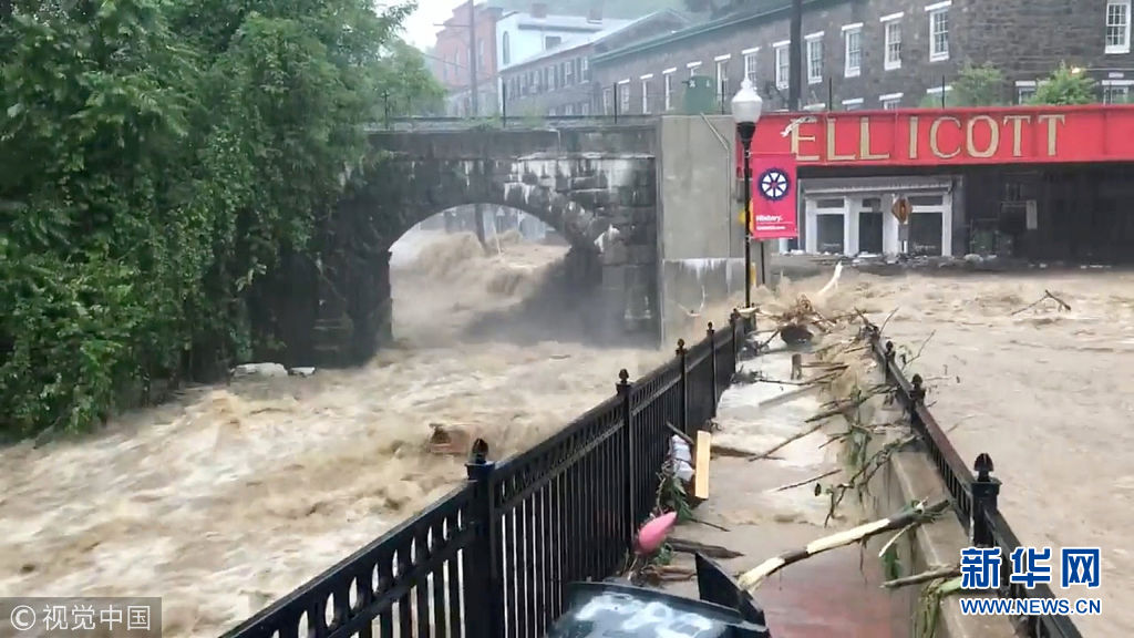 美國馬里蘭州爆發(fā)洪水 城市街道變湍急河流