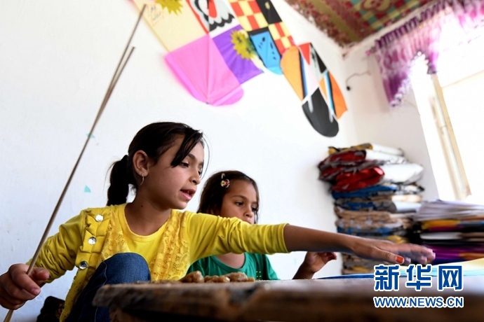 5月29日,在阿富汗首都喀布爾,希杰蘭(左)和妹妹在作坊內扎風箏。對于阿富汗這個飽經(jīng)戰(zhàn)火洗禮的國度,風箏是人們難得的娛樂品。不少當?shù)睾⒆佑H手制作風箏貼補家用,可謂窮人的孩子早當家。九歲的希杰蘭過去幾年共制作了上萬個風箏。今年“六一”國際兒童節(jié)來臨之際,記者一行來到希杰蘭與家人位于喀布爾郊區(qū)的風箏作坊。在略顯簡陋的房間內,大大小小、五顏六色的紙張隨處可見,不足20平方米的作坊在陽光下如同一個彩色世界。新華社記者 代賀 攝