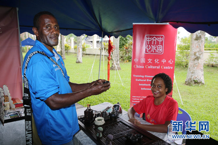 一位斐濟(jì)青年正準(zhǔn)備品嘗中國(guó)名茶。 新華網(wǎng)記者張永興 攝