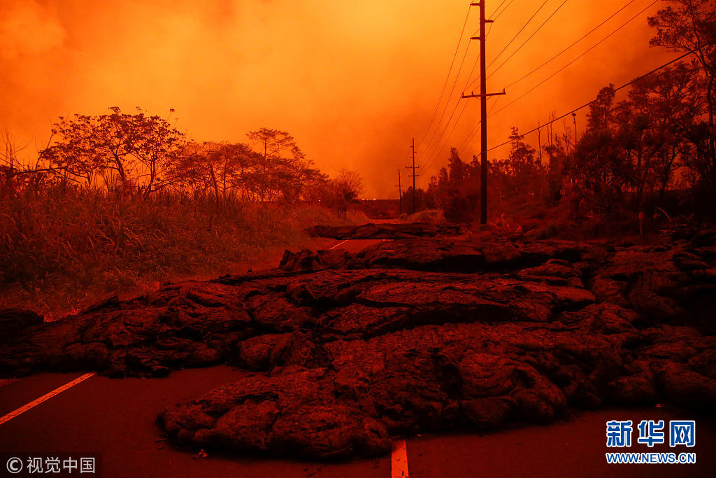 夏威夷火山持續(xù)噴發(fā) 燃燒巖漿映紅夜空
