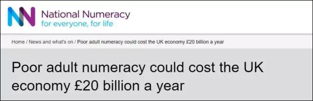 英國國家數(shù)學能力中心就曾“恨鐵不成鋼”地發(fā)布統(tǒng)計報告稱:英國成年人糟糕的數(shù)學水平會讓英國每年無意中損失200億英鎊。
