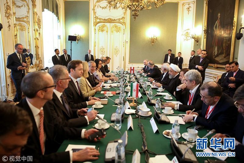 2018年7月4日,奧地利維也納,伊朗總統(tǒng)魯哈尼抵達(dá)奧地利進(jìn)行訪問,會(huì)晤?yuàn)W地利總統(tǒng)范德貝倫和總理塞巴斯蒂安·庫(kù)爾茨。伊朗總統(tǒng)魯哈尼2日出發(fā)前往瑞士和奧地利訪問。他這次西歐行將重點(diǎn)討論伊朗核問題全面協(xié)議。(圖片來源:視覺中國(guó))