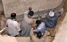 7月19日,考古人員在埃及亞歷山大的石棺開啟現(xiàn)場(chǎng)工作。 埃及文物部19日宣布,考古人員近日在埃及北部地中海沿岸城市亞歷山大發(fā)現(xiàn)一口裝有三具古代武士遺骸的石棺。 新華社發(fā)