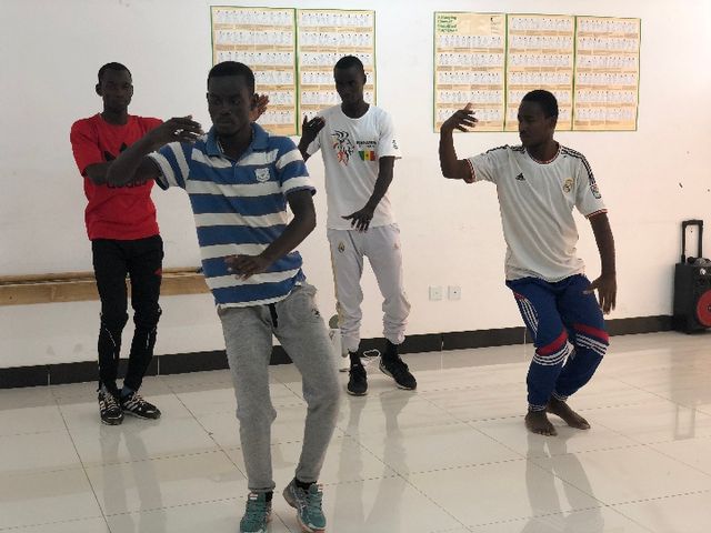 2018年7月18日,塞內(nèi)加爾達喀爾大學孔子學院學生練習打太極拳。(新華社記者駱珺攝)